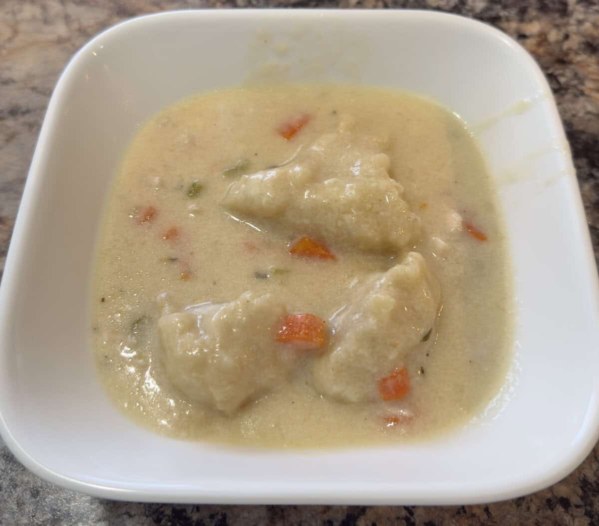 I absolutely love this dough‼️‼️ It’s so very easy to make and it is delicious. I didn’t use any vegetables in my dumplings and I used leg quarters (cut meat off bone once done). I also make smaller dough because I don’t like them large. This is my go to recipe when I can’t get my mom to make her famous homemade chicken and dumplings.