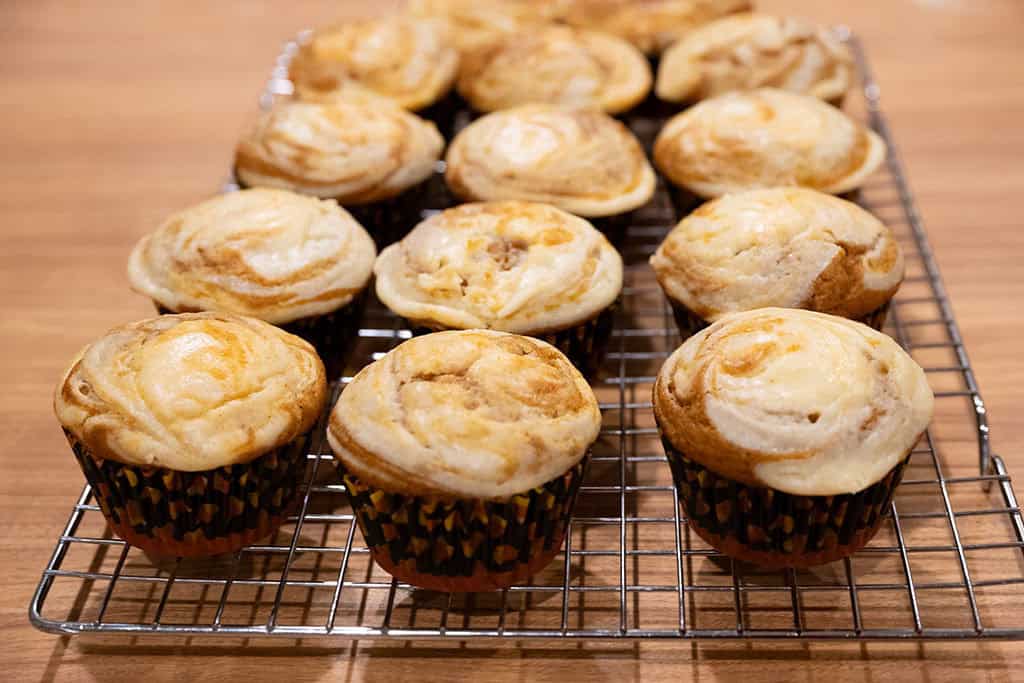 - Dollop: Don’t have time to swirl the cream cheese into the top of each muffin? Try adding a dollop of the cream cheese filling to the center of the batter instead.