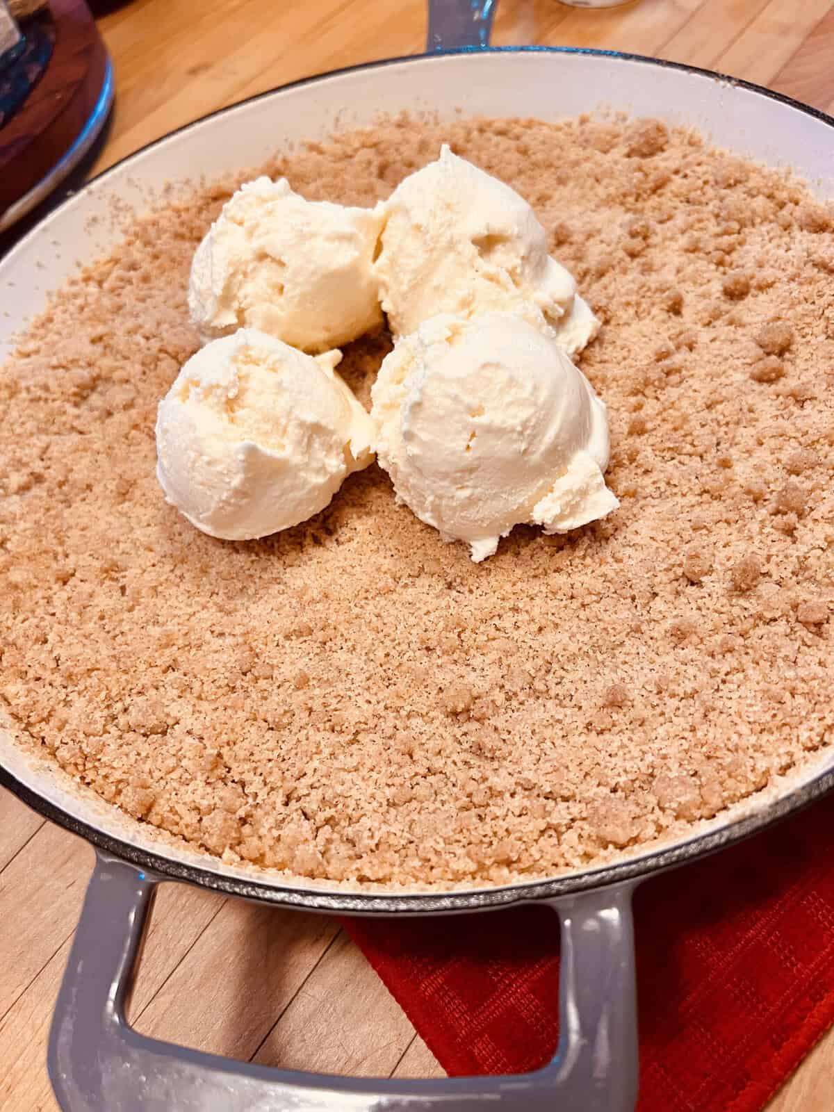 - Perfect with Ice Cream: The thick cinnamon streusel topping really takes this recipe to the next level, but then you serve it warm with a scoop of vanilla ice cream. Oh y’all, trust me, it is so good.
